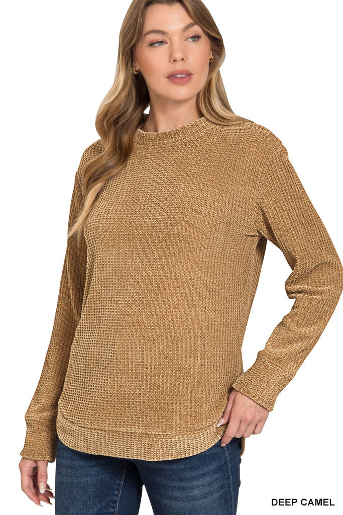 CHENILLE WAFFLE ROUND NECK SWEATER