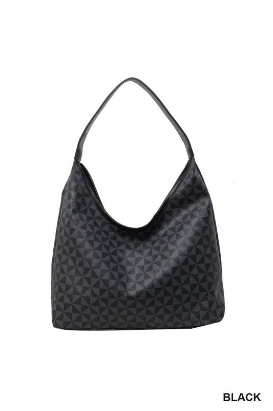 VEGAN LEATHER BOHEME HOBO SHOULDER TOTE BAG -FASHIONABLE TRIANGLE PATTERN -PERFECT FOR DAILY USE -SMOOTH ZIPPER CLOSURE -MODERN AND TRENDY DESIGN -PLENTY OF STORAGE SPACE -HEIGHT: 9.4", LENGTH: 13.8", DEPTH: 4.3"